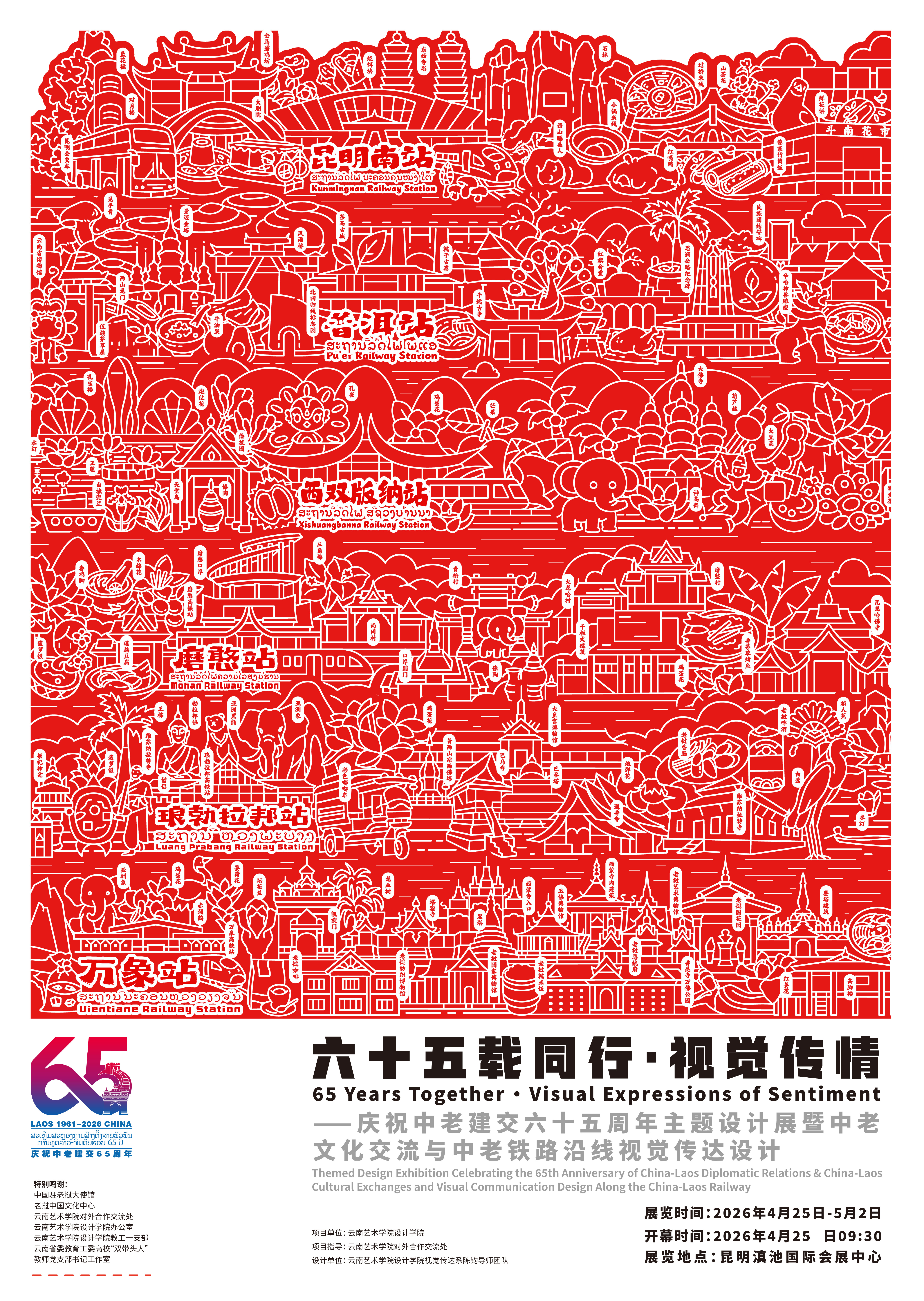云南艺术学院「六十五载同行・视觉传情」主题设计展,解锁中老铁路沿线的文化密码,把跨越山海的友谊,嵌入每一件匠心创作里。